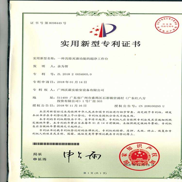 下一產(chǎn)品:專利證書——帶補風通風柜