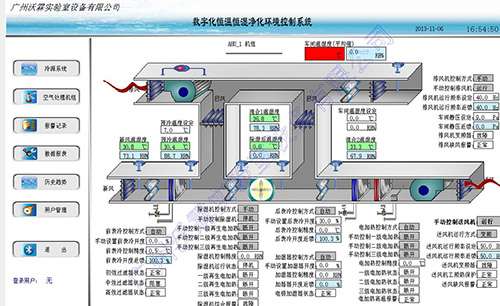 恒溫恒濕實(shí)驗(yàn)室系統(tǒng)工程為了達(dá)到溫度濕度壓差的自動(dòng)控制,為了實(shí)現(xiàn)功能控制系統(tǒng)采用DDC控制,裝設(shè)在回風(fēng)管內(nèi)的溫度傳感器所檢測(cè)的溫度送往DDC控制器與設(shè)定點(diǎn)溫度相比較,用比例積分加微分控制,輸出相應(yīng)的電壓信號(hào),控制裝在回水管上的電動(dòng)調(diào)節(jié)閥的動(dòng)作,使回風(fēng)溫度保持在所需要的范圍。裝設(shè)在送風(fēng)管內(nèi)的濕度傳感器所檢測(cè)的濕度送往 DDC控制器與設(shè)定點(diǎn)濕度比較,用比例積分控制,輸出相應(yīng)的電壓信號(hào),控制電動(dòng)蒸汽閥的動(dòng)作,使送風(fēng)濕度保持在所需要的范圍。裝設(shè)在回風(fēng)管及新風(fēng)管的溫度及濕度傳感器所檢測(cè)的溫/濕度送往DDC控制器進(jìn)行回風(fēng)及新風(fēng)焓值計(jì)算,按回風(fēng)及新風(fēng)焓值的比例,輸出相應(yīng)的電壓信號(hào),控制回風(fēng)風(fēng)門及新風(fēng)風(fēng)門的比例開(kāi)度,使系統(tǒng)節(jié)能。